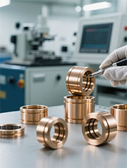 了解更多+FZH(銅基)、FZL(鋁基)、FZP(樹脂基)鋼球保持架,分別以銅合金、硬鋁合金、POM樹脂為基體,并在其外圓表面上,加工出排列有序、大小適當(dāng),新裝特殊的孔穴,在其孔穴中鑲?cè)霛L動軸承鋼球。口采用最新的溝槽圓周鎖球工藝,有效地解決了傳統(tǒng)式鎖球不能完全防止鋼球脫落的難題。孔底加工出90°止口使鋼球在孔內(nèi)自由轉(zhuǎn)動而不脫落。由于鋼球的直徑大于保持圈的壁厚,所以在使用時鋼球高出保持圈內(nèi)、外圓表面,直接與相配的孔與軸接觸,使基體(保持圈)浮于中間,并且相配的孔與軸半徑之差小于鋼球直徑,即鋼球與之配合為過盈配合,配合精度高,軸與孔相對運動靈活。是保持圈的更新?lián)Q代產(chǎn)品。 FU粉末冶金含油軸承是以金屬粉末為原料,經(jīng)過模具壓制,高溫?zé)Y(jié)后整形而成。它具有細(xì)微、均布的孔隙,經(jīng)潤滑油真空浸漬后形成含油狀態(tài)。該產(chǎn)品具有短期不加油,使用成本低,內(nèi)外徑尺寸精度高等特點。根據(jù)材質(zhì)不同,分為以下三種型號:FU-1銅基含油軸承、FU-2鐵基含油軸承、FU-3銅鐵混合基含油軸承。